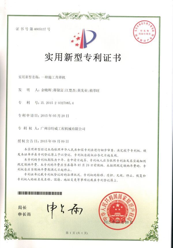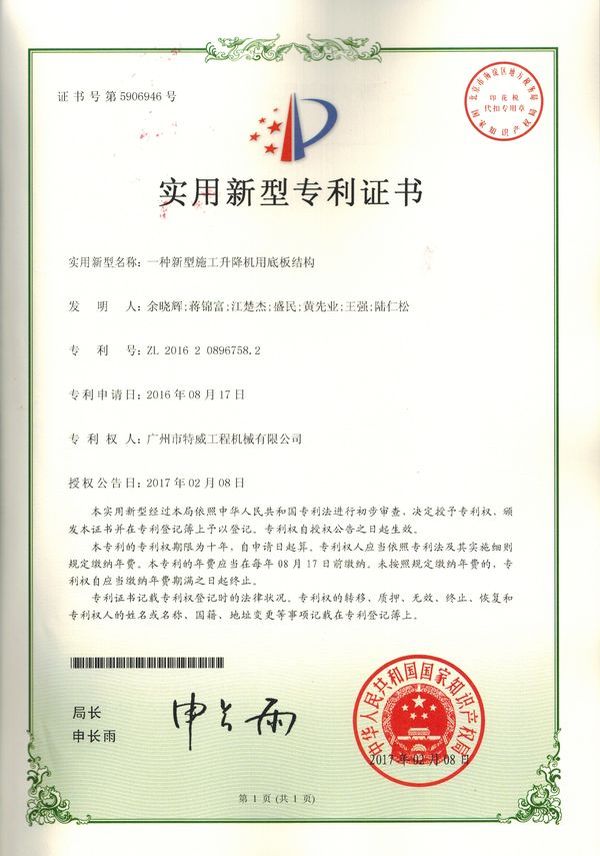 廣州市特威工程機械有限公司地處廣州市白云區神山鎮,廣清高速神山出口附近,是一家施工升降機的專業生產廠家。公司成立于2011年,占地100000多平方米,注冊資金1060萬元,現有員工300余人其中工程技術人員33人,高級技術人員52人。